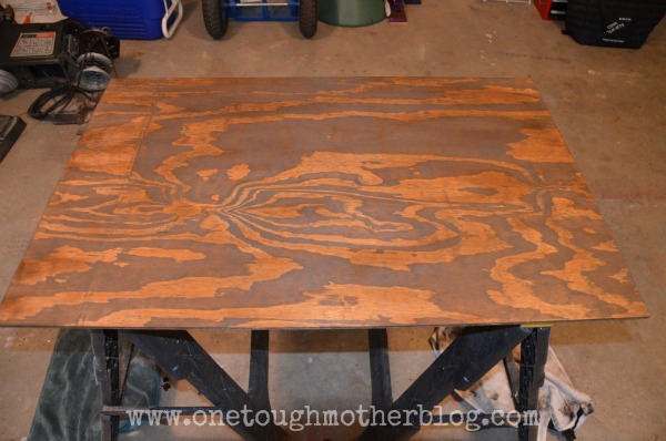 On a Home Depot date night with the hubs, I picked up a big piece of plywood, some gorgeous antique stain, and a brush.